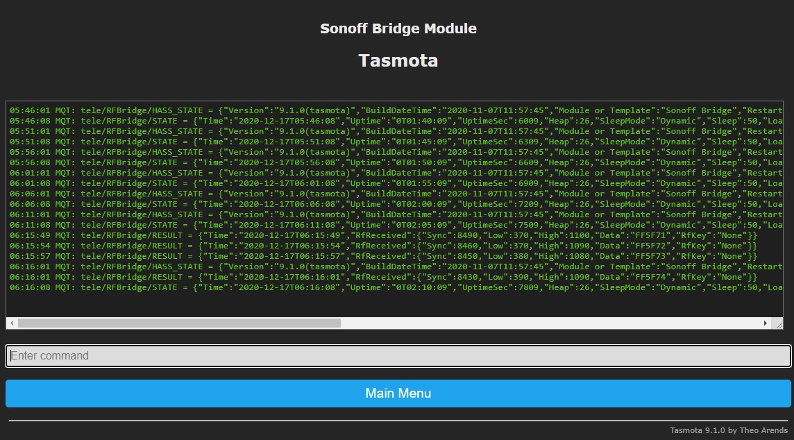 - Tasmota has already been flashed onto the Sonoff RF Bridge